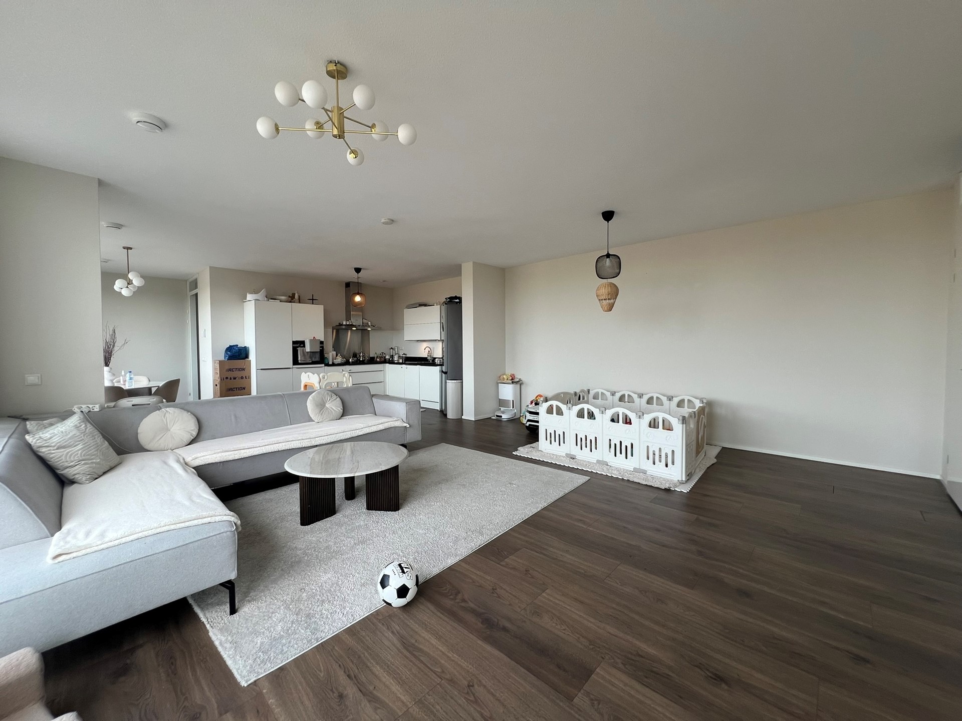 De woonkamer heeft een open keuken welke is voorzien van diverse inbouwapparatuur zoals een vaatwasser, oven / magnetron, inductie kookplaat en koel- vriescombinatie. Vanuit hier is er toegang tot het privé terras.