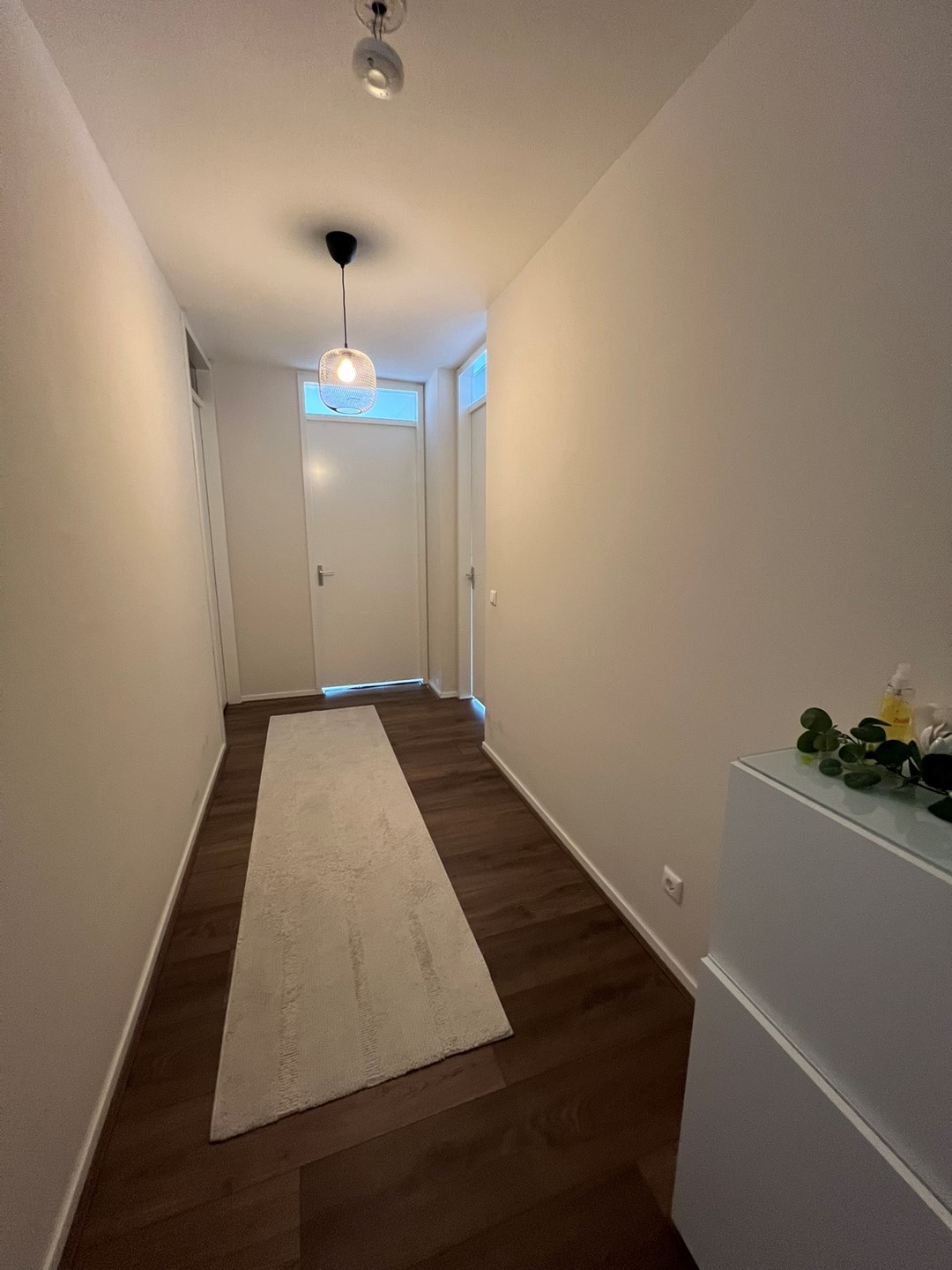 Hal voorzien van een meterkast, een wasruimte en een separaat toilet en fonteintje. Vanuit de hal is er toegang tot alle vertrekken.