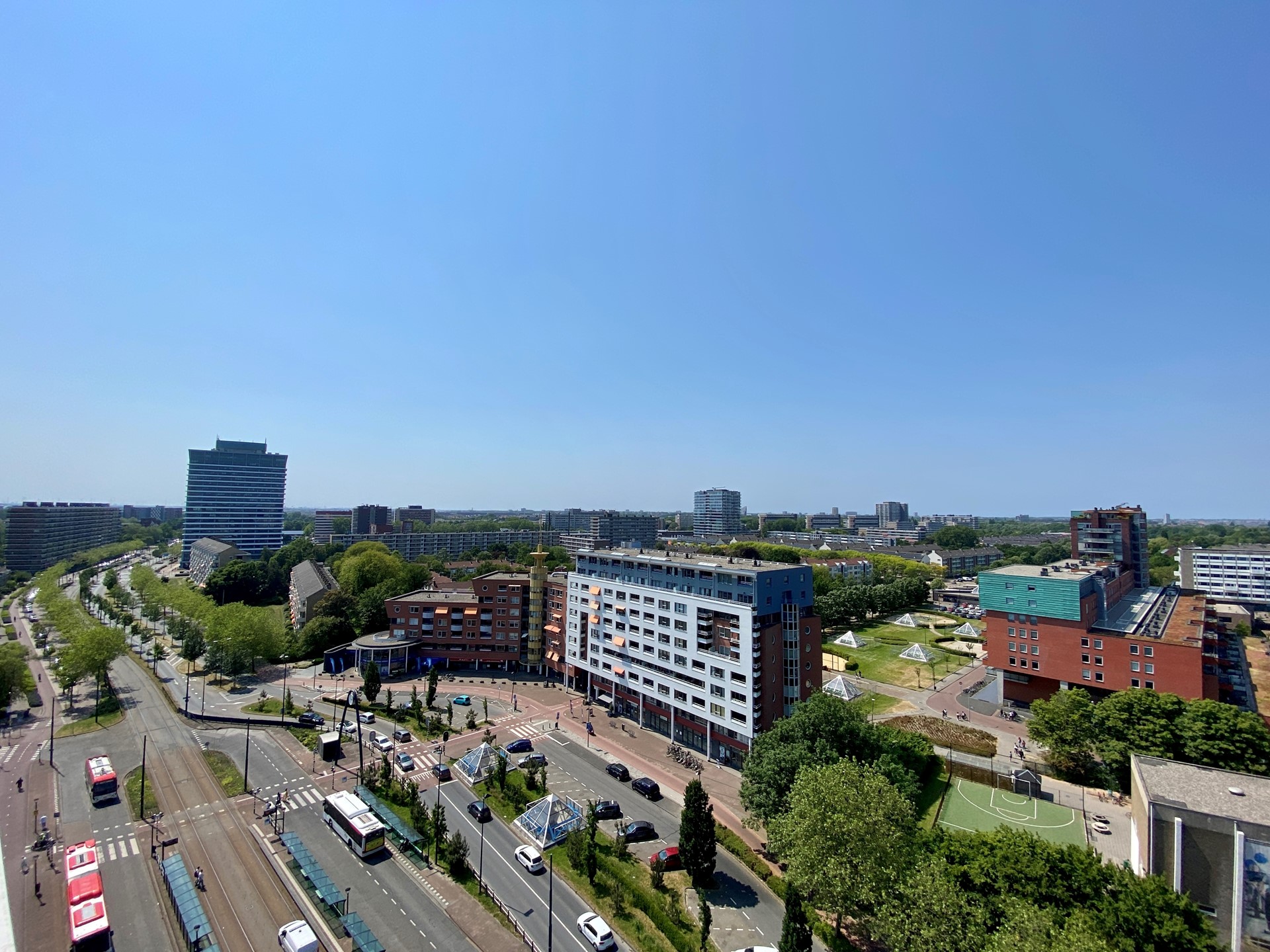 OMGEVING: Het appartementencomplex bestaat uit 84 twee- en driekamerappartementen en 100 parkeerplaatsen gelegen op het dak van de naastgelegen bibliotheek. Het complex is gebouwd in 2006 en telt dertien bouwlagen. De woningen variëren in oppervlakte tussen ca. 66 m2 en 116 m2 (GBO) en hebben een balkon, loggia of serre. Op de begane grond en entresol bevindt zich een commerciële ruimte van ca. 895 m2 (VVO). Winkelcentrum In de Boogaard bevindt zich op loopafstand van het complex.