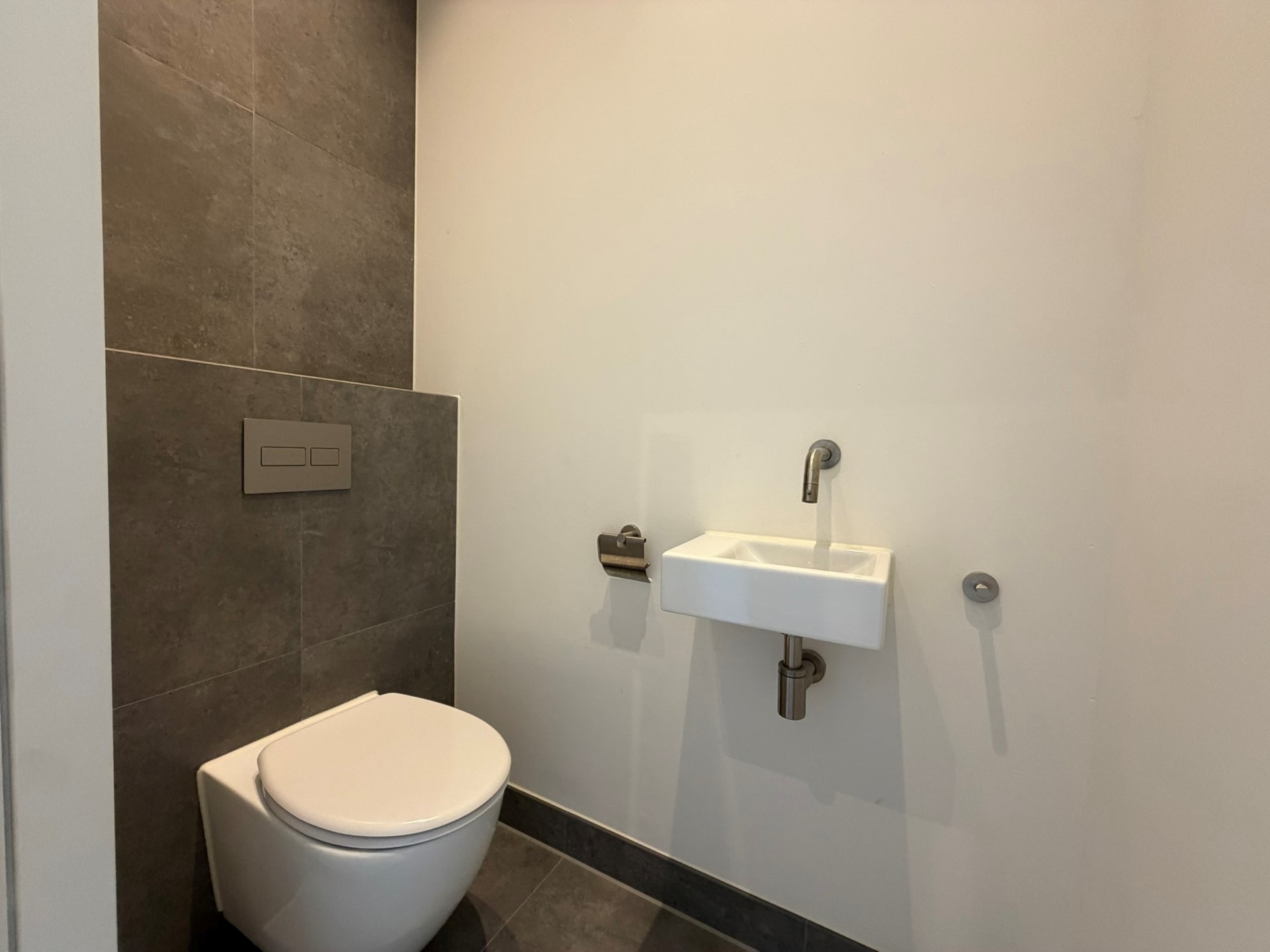 EERSTE VERDIEPING: Entree van het appartement. De hal is voorzien van een separaat toilet en biedt toegang tot de woonkamer.
