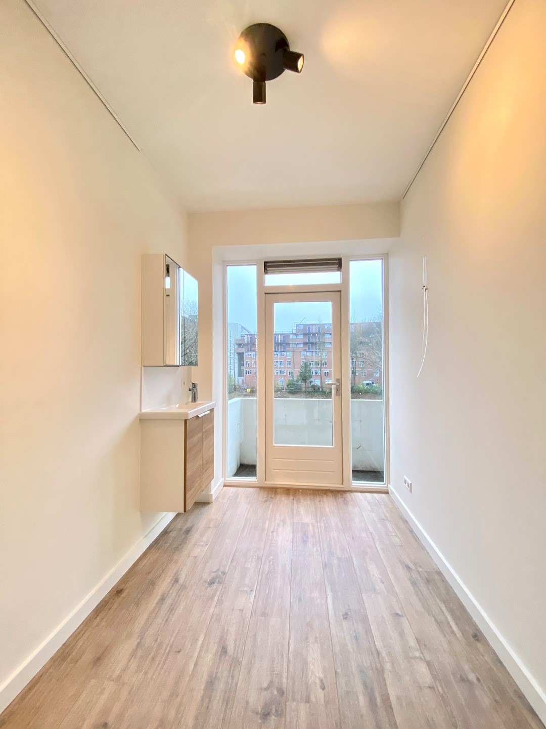 EERSTE VERDIEPING: Eigen entree, gang met toegang tot alle vertrekken. Separaat toilet. De woonkamer is gelegen aan de voorzijde en biedt, net als een van de slaapkamers, toegang tot het balkon. De keuken ligt aan de achterzijde en is voorzien van een koelkast, vriezer, wasmachine, inductiekookplaat, oven en een vaatwasser. De badkamer is bereikbaar via zowel een van de slaapkamers als de keuken. Alles slaapkamers zijn voorzien van een wastafelmeubel met spiegelkastje.
