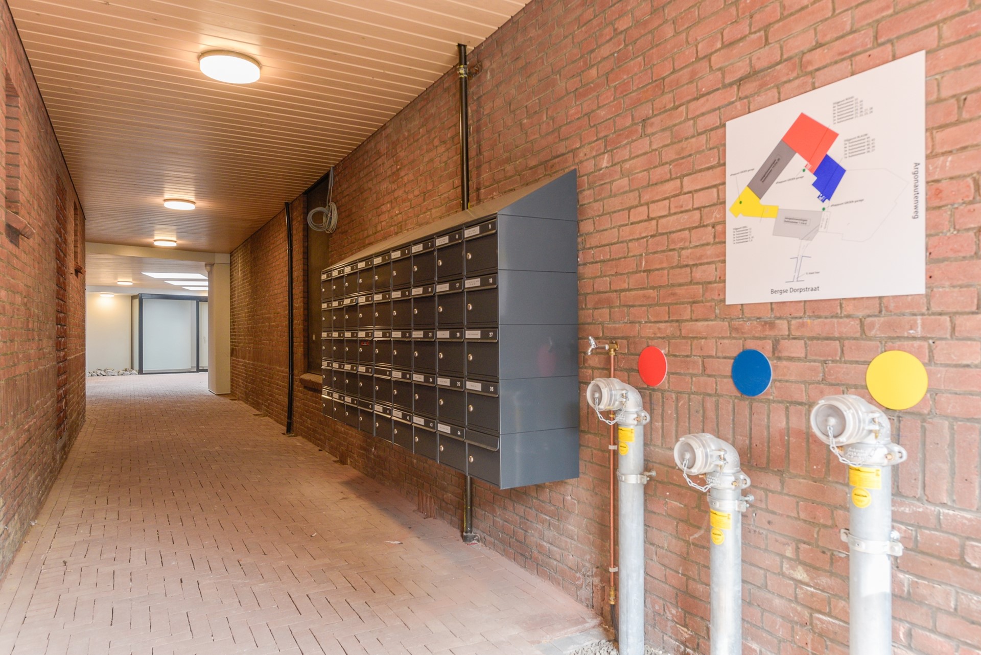 BEGANE GROND: Vanuit de Bergse Dorpsstraat is er toegang tot het afgesloten complex. Entree met bellentableau en brievenbussen. Afgesloten parkeergarage waar ook de beschikbare plaats is gesitueerd. De plaats is voorzien van een oplaadmogelijkheid. In de garage is ook voldoende plaats voor het stallen van fietsen. Vanuit de portiek is er via zowel het trappenhuis als via de lift toegang tot de eerste verdieping en de binnentuin