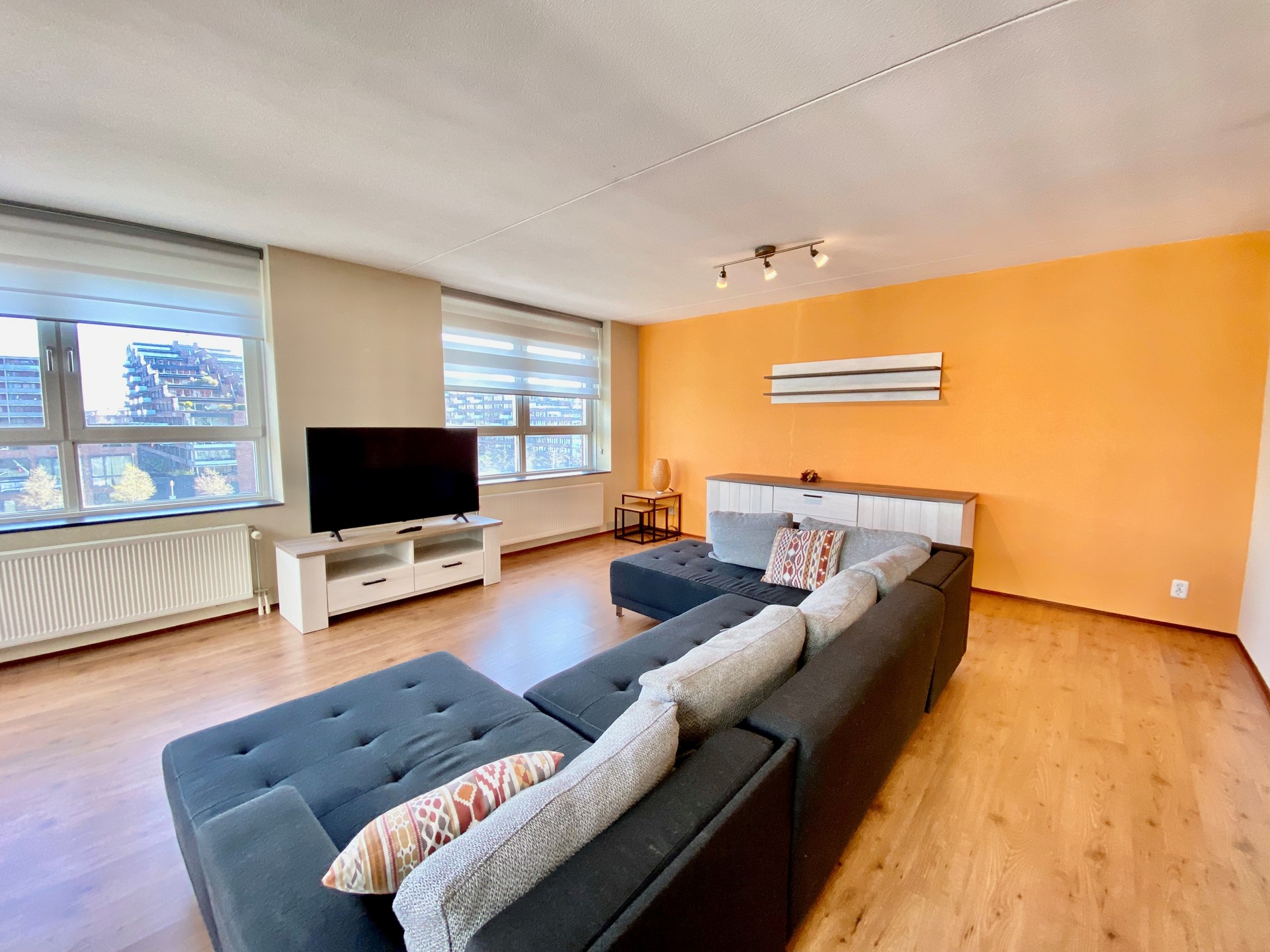 ROTTERDAM KOP VAN ZUID: Fantastische, ruime en volledig gemeubileerde woning met fenomenaal uitzicht. Geschikt voor twee woningdelers en voorzien van een privéparkeerplaats in de ondergelegen garage.