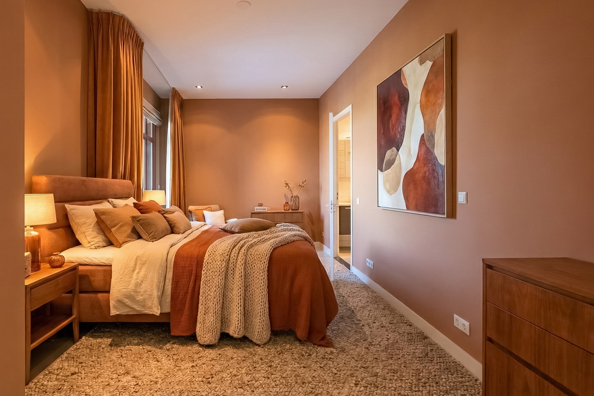 • 2 royale slaapkamers met aansluitend compleet afgewerkte luxe badkamer met bad, inloopdouche, wastafelmeubel, toilet.