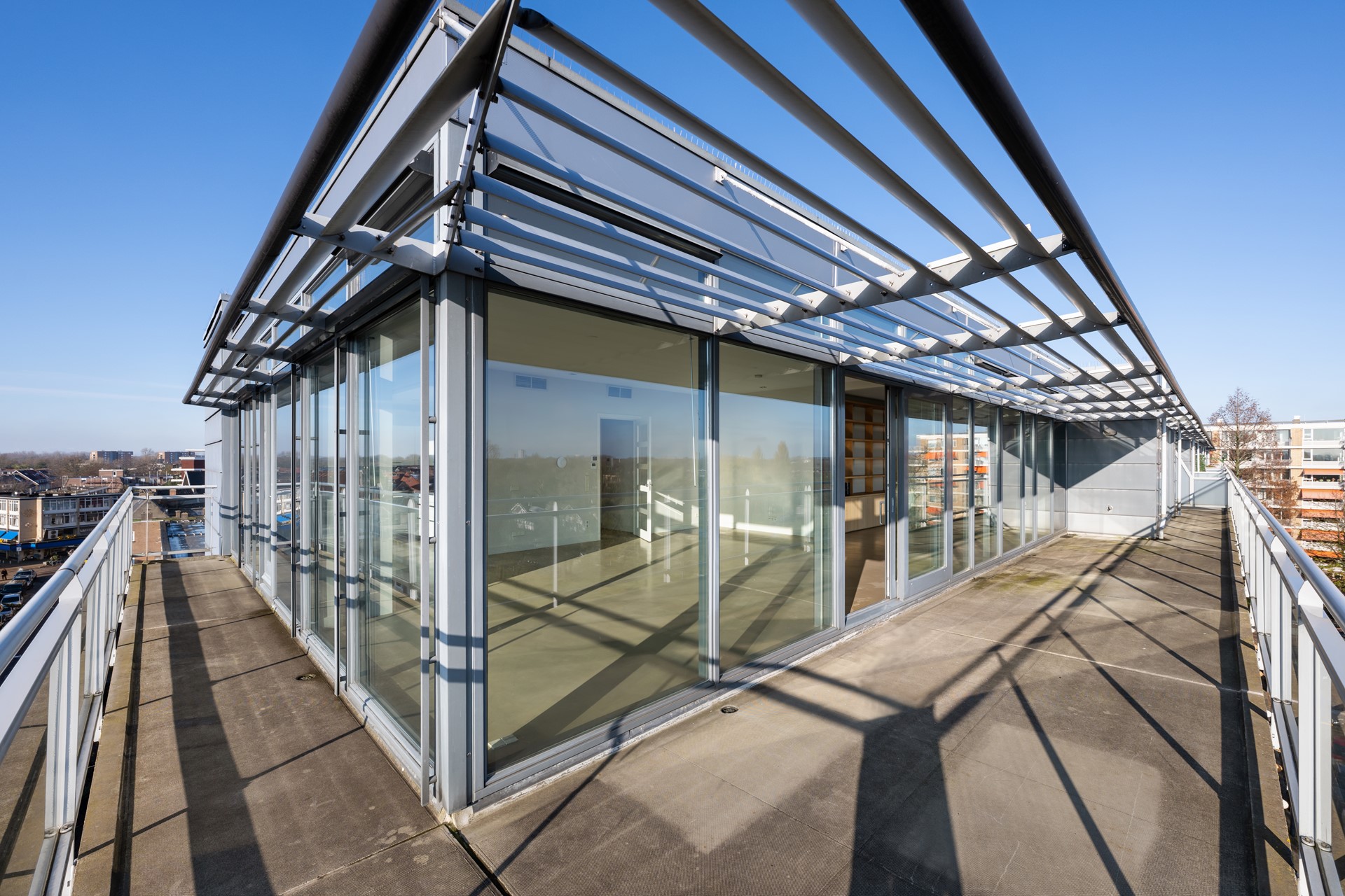 De woning heeft een ruime dakterras die en een L vorm rond de woning heen loopt.