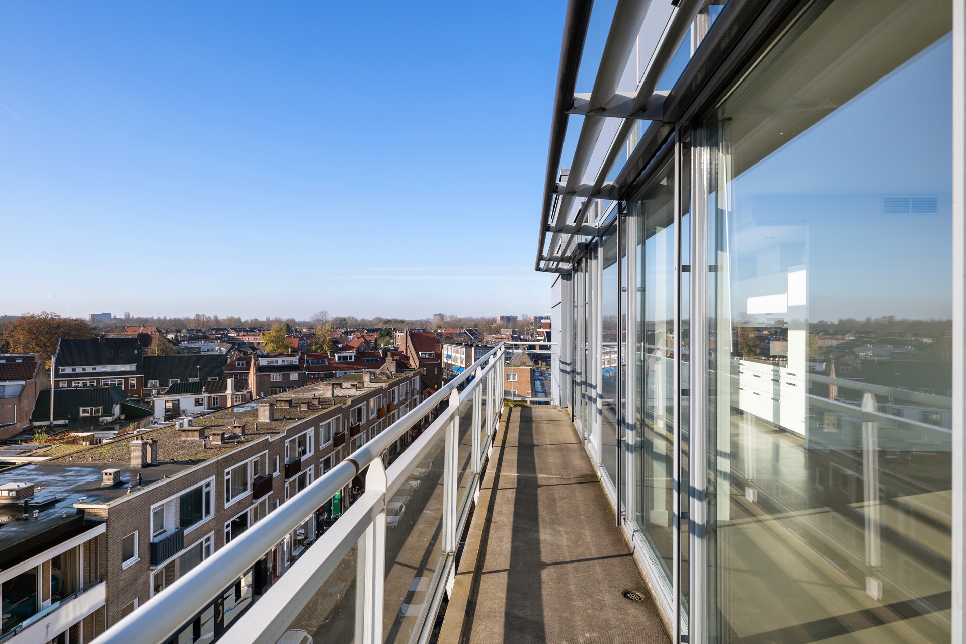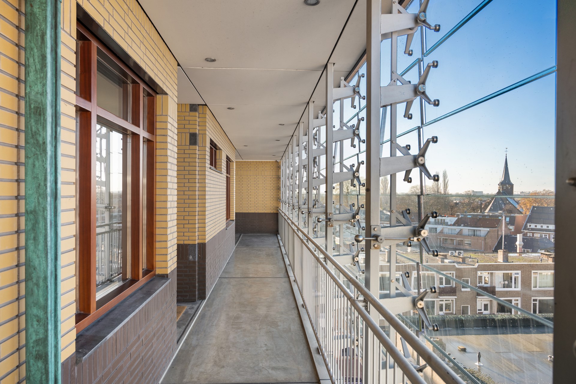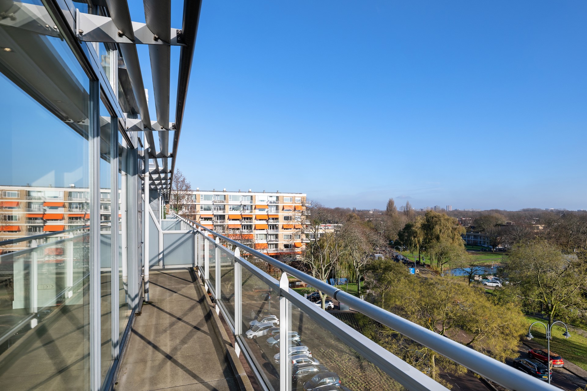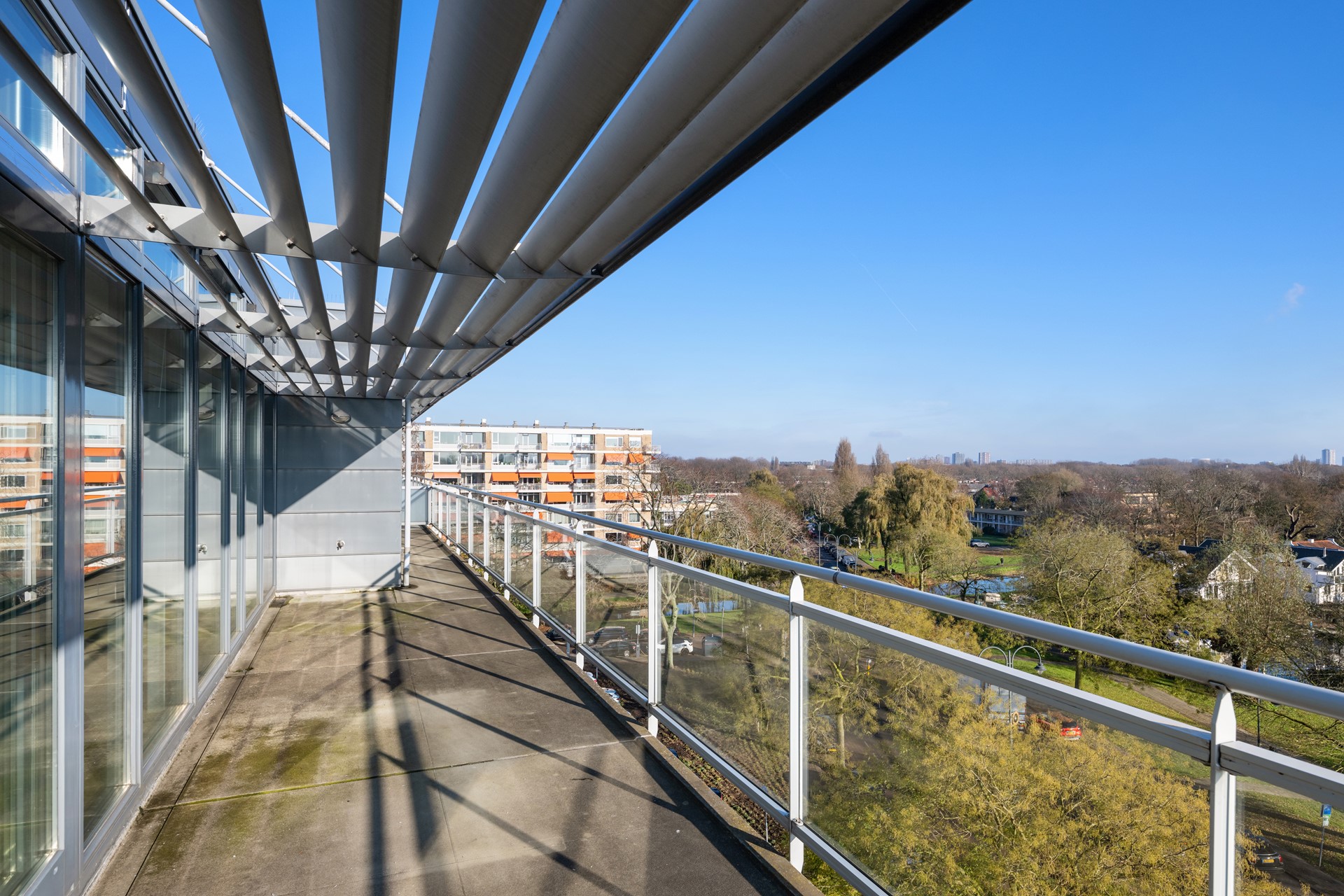 Onderscheidende architectuur. De penthouses zijn als nieuwe verdieping in 2006 gebouwd bovenop het bestaande flatgebouw. Een combinatie van hedendaags/ stijlvol en Berlage. Voor en zij-gevels met veel glas, hout, zink en staal. De achtergevel die de galerij beschermd, bestaat uit horizontale glazen panelen met verstelbare ventilatie is uit een geheel andere tijd. Uitgevoerd in tweekleurig metselwerk met natuursteendetails in de stijl van Berlage met het Gemeentemuseum in de Haag als inspiratie. Hoge, brede voordeuren, raampartijen van mahonie, natuurstenen dorpels, koperen hemelwaterafvoeren etc.