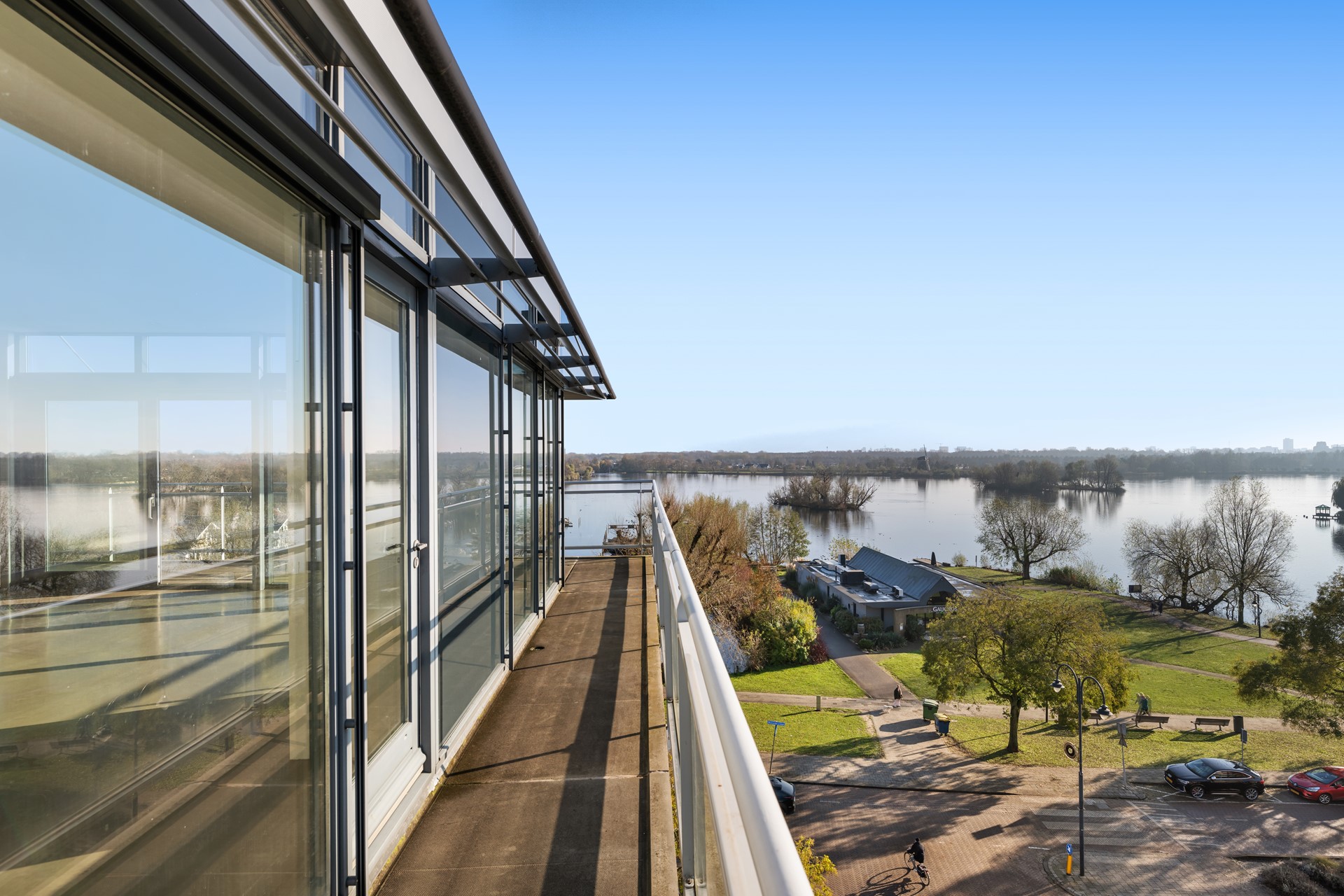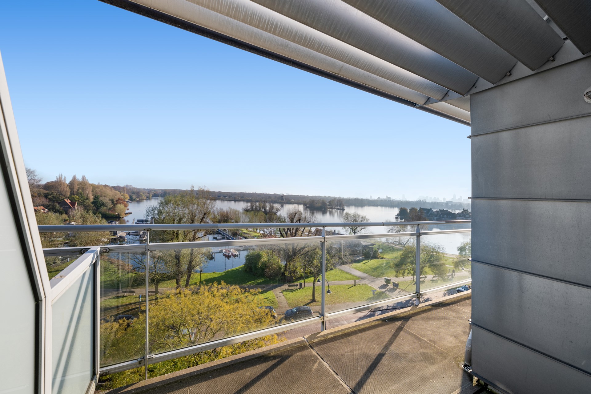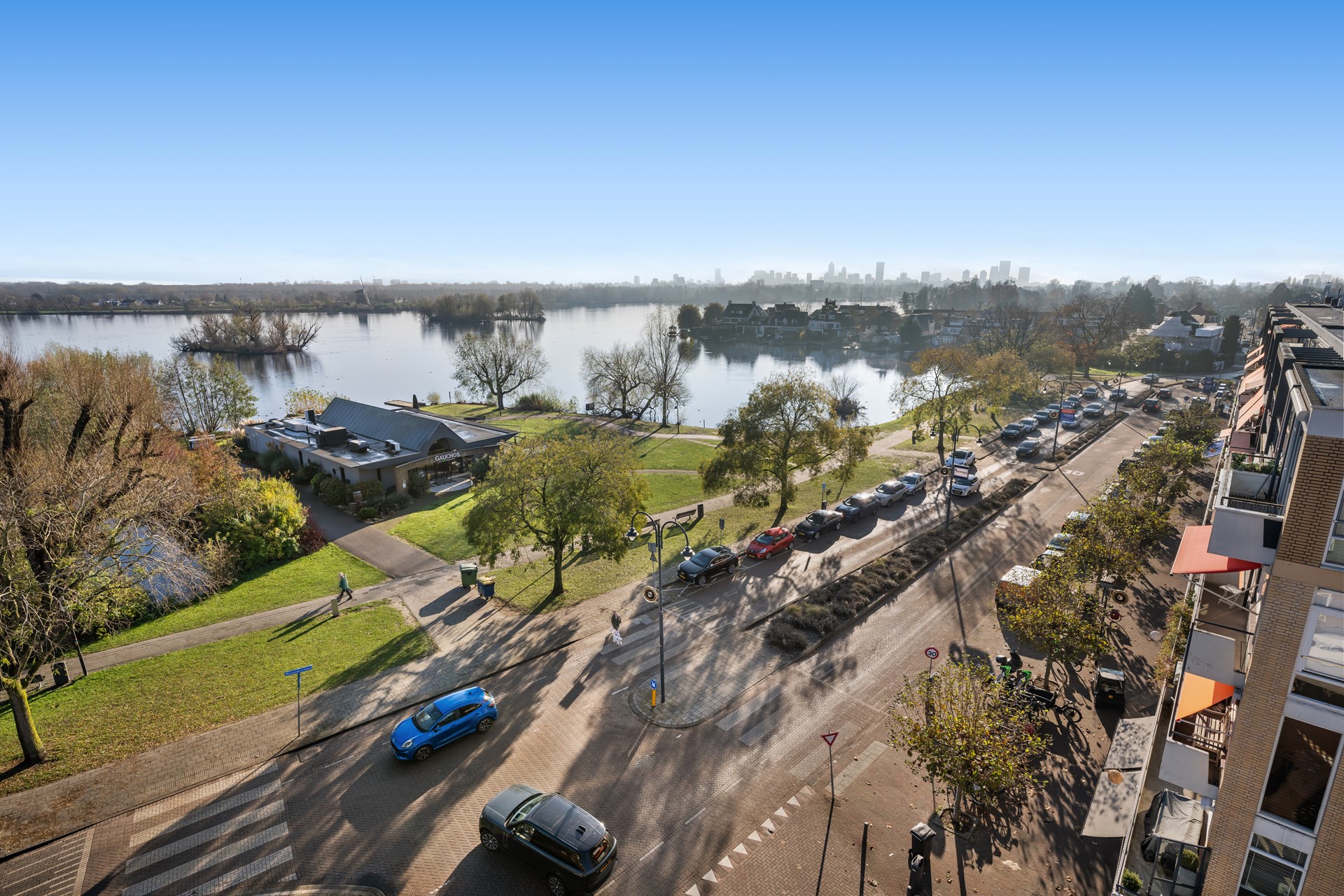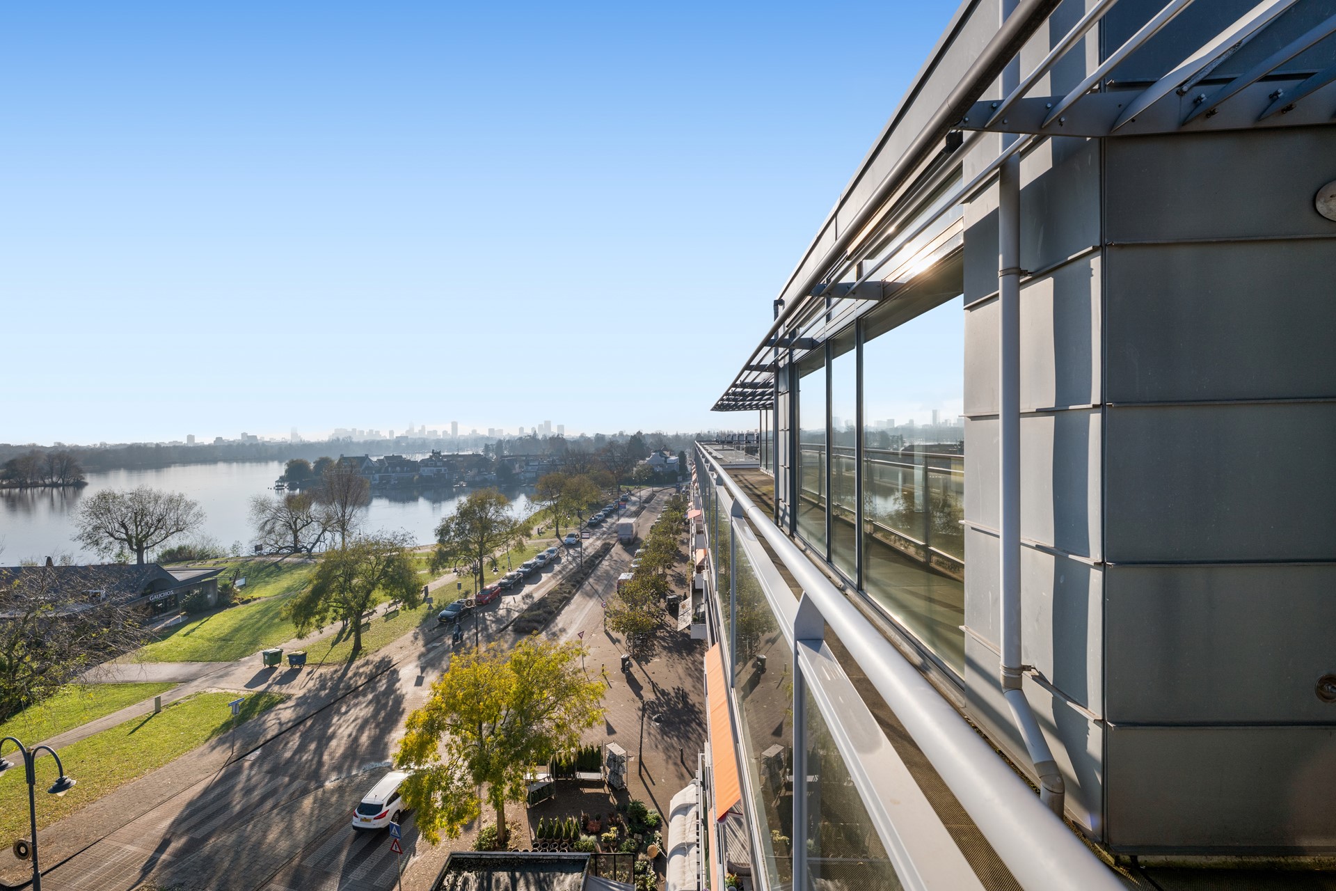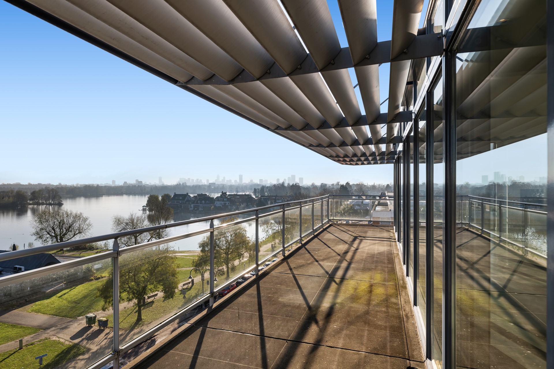 • Ruime terrassen met uitzicht over de Bergse Voorplas en skyline