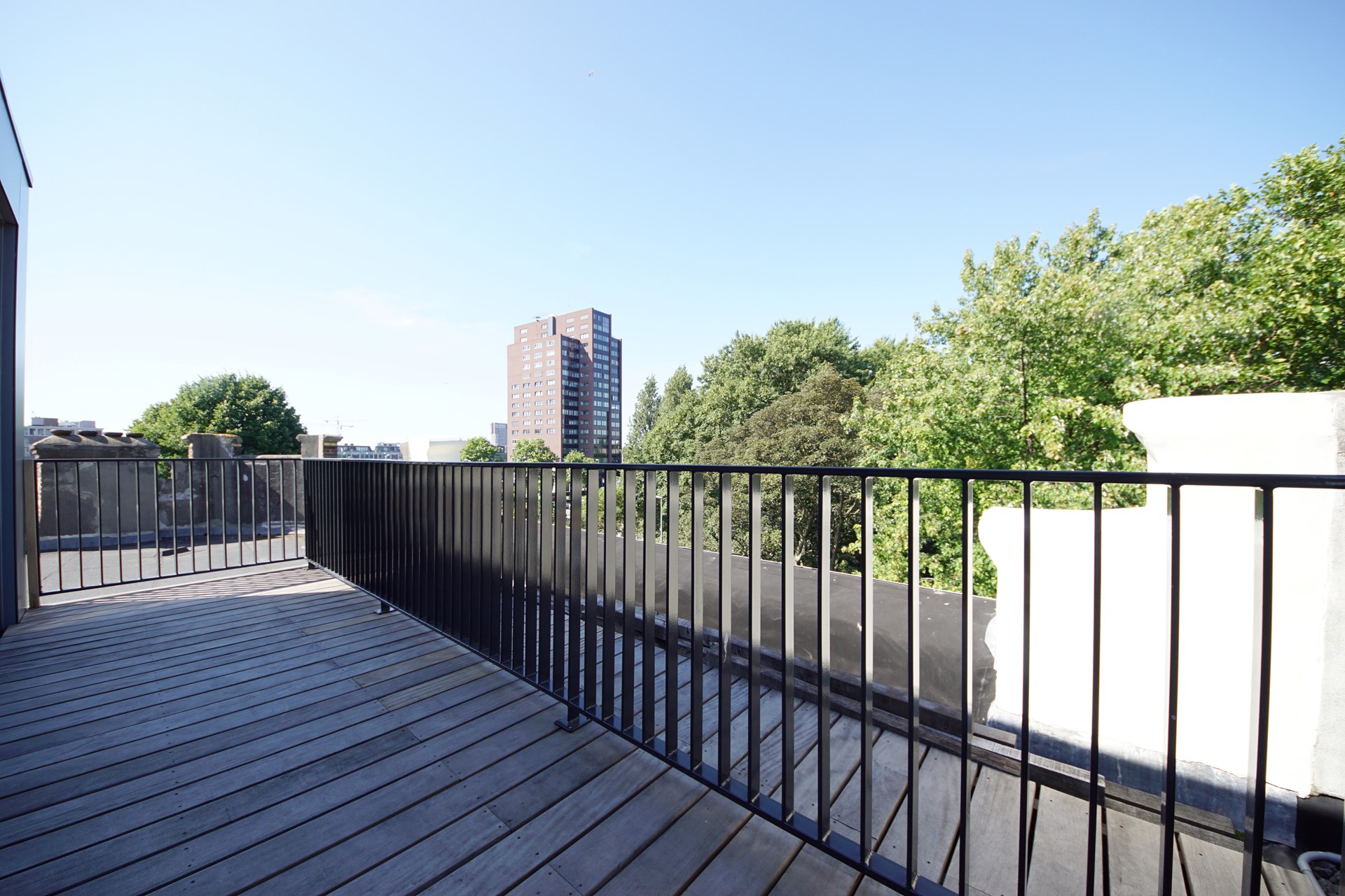VIERDE VERDIEPING: Eigen entree, hal met toegang tot nagenoeg alle vertrekken. Woonkamer met open keuken, gelegen aan de achterzijde. De keuken is voorzien van een inductie kookplaat, combi-oven, koelkast, vriezer en een vaatwasser. Ruim zonnig terras bereikbaar vanuit de woonkamer. De volledig betegelde badkamer is voorzien van een ruime inloopdouche, een wastafel met meubel en toilet. Slaapkamer met grote ramen.