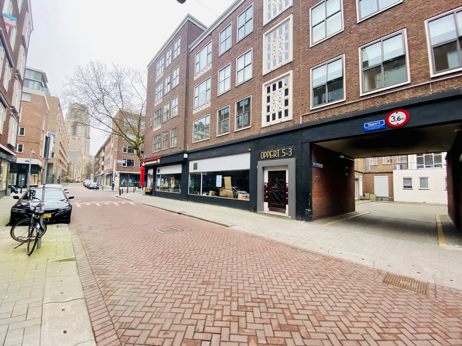 OMGEVING: Midden in het bruisende centrum van Rotterdam, op een steenworpafstand van de Koopgoot, Coolsingel en het Stadhuisplein, ligt de -voor een ieder wel bekende- winkelstraat de 'Meent'. Op de hoek Meent, Oppert en Delftsevaart staat een gebouw dat een prachtig authentiek voorbeeld is van de Wederopbouwarchitectuur met 3 eigen afgesloten entrees op straatniveau. De Meent ligt in het 'Laurenskwartier, vlakbij de Middeleeuwse Laurenskerk. De Meent combineert nog de familiebedrijfjes met speciaalzaken met trendy winkels en diverse restaurants en cafés die alle bijdragen aan de gezelligheid die deze plek uitstraalt. De plek die gekenmerkt wordt door haar rijke historie van voor- en na de Tweede Wereldoorlog en is dé plek om uit te gaan. Ook de markt die zich een aantal keer in de week (op dinsdag en zaterdag) op het naastgelegen Binnenrotte (plein) bevindt, draagt hier aan bij. Tevens zijn er openbaar vervoer mogelijkheden in overvloed (metro, trein, tram en bus zijn op loopafstand) en ook parkeergelegenheid in de nabijgelegen parkeergarage aan de St. Jacobsplaats behoort tot de mogelijkheden.