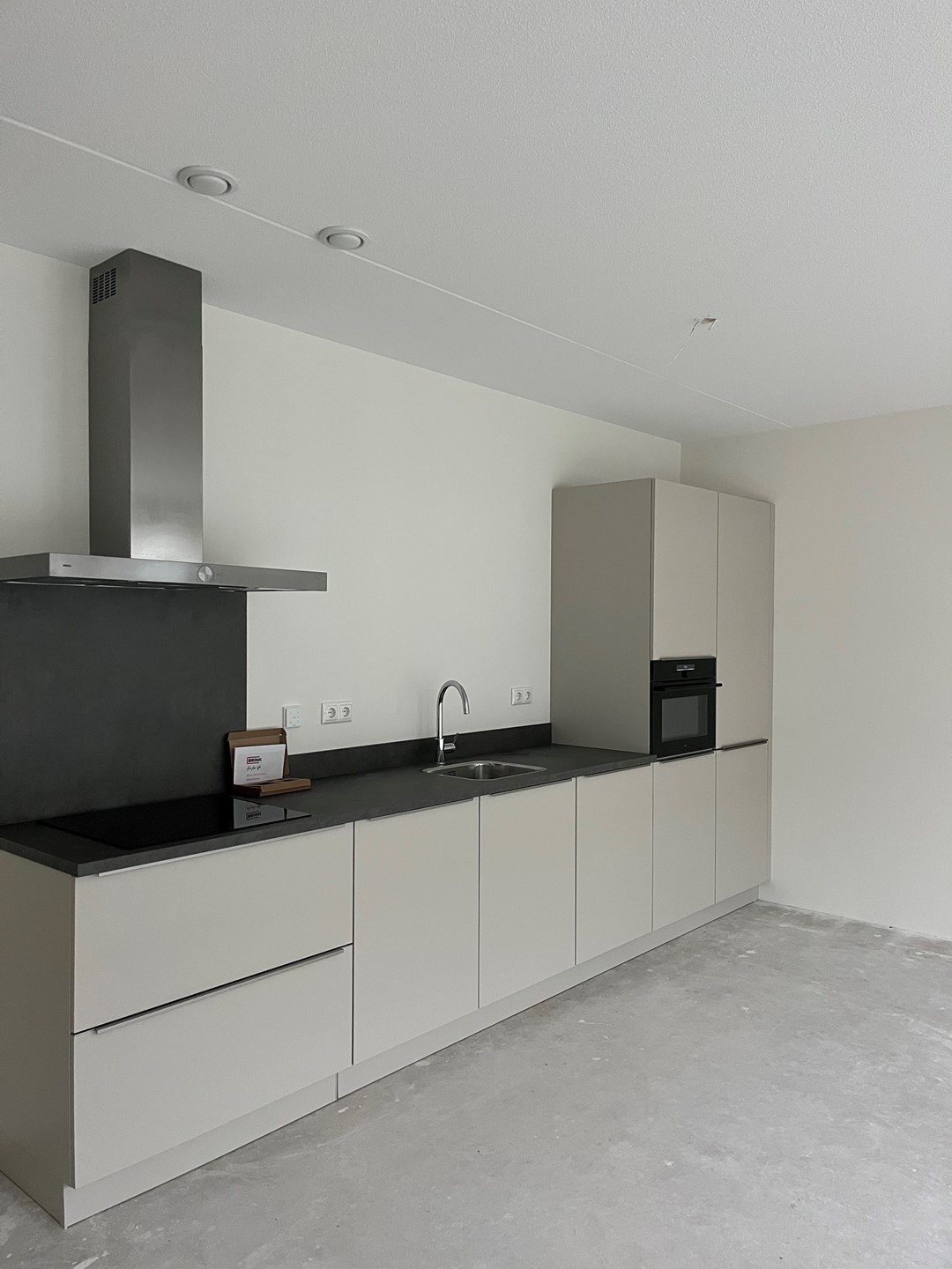 De open keuken is voorzien van hoogwaardige inbouwapparatuur van ATAG (inductie kookplaat, afzuigkap, koel-/ vriescombinatie, vaatwasser en combimagnetron). Woonkamer met toegang tot het balkon.