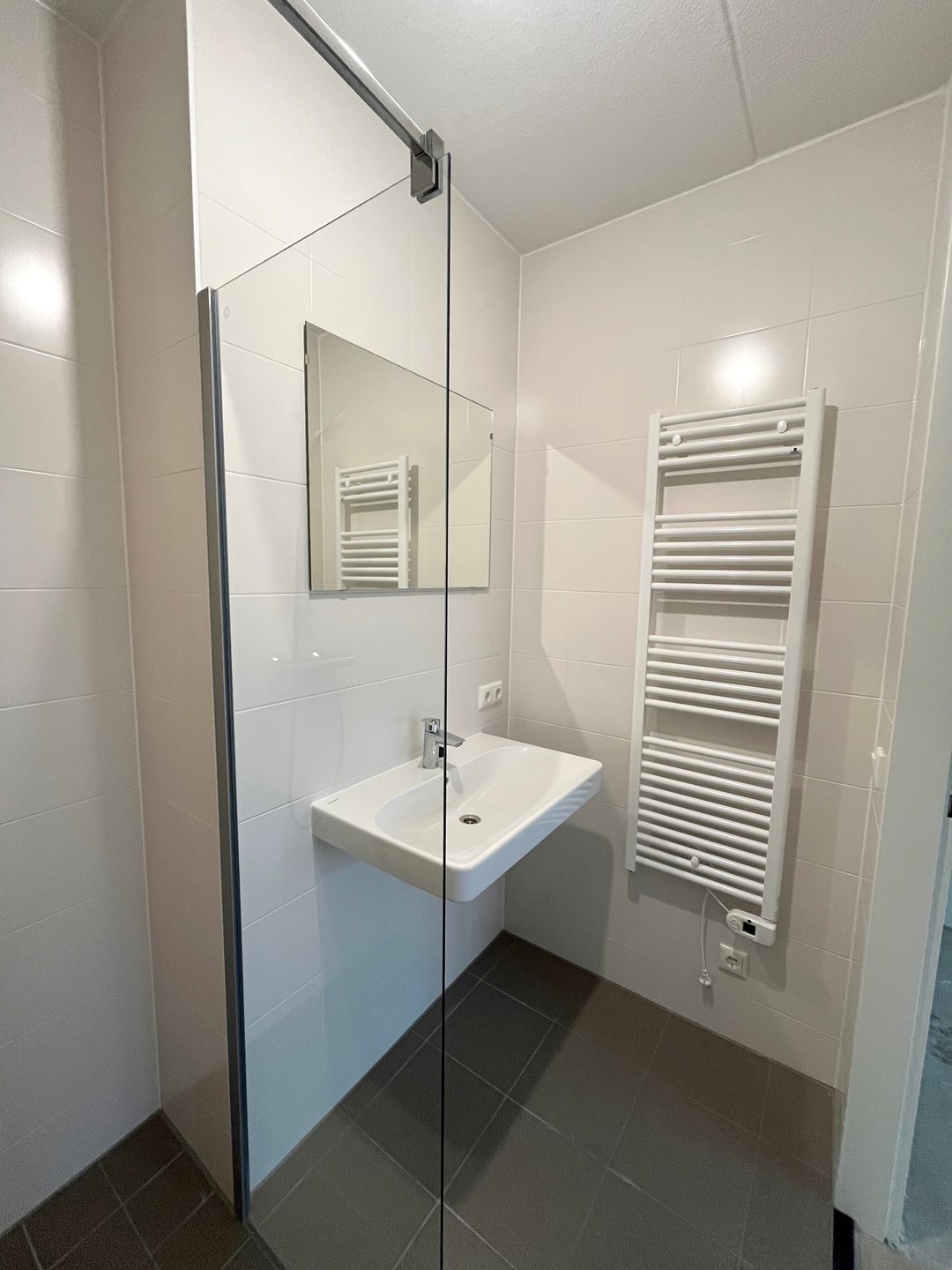 • De badkamer is voorzien van tegelwerk tot aan het plafond en sanitair van Villeroy&Boch en Geberit met Grohe kranen